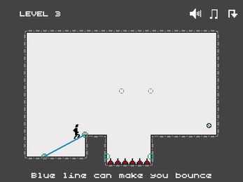 The line has its own variants. There's a normal, black line that works as you expect it to work. It just allows you to go from point A to point B in a straight forward way. There's also bouncy, blue line. As the name suggests, if you fall on this line it will bounce you off higher and higher.
